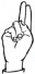 На ћирилици написано КОНСТАНТИН ЋАЛДОВИЋ састоји се из 18 слова [?]. Исписано ћириличном једноручном азбуком за глувонеме: